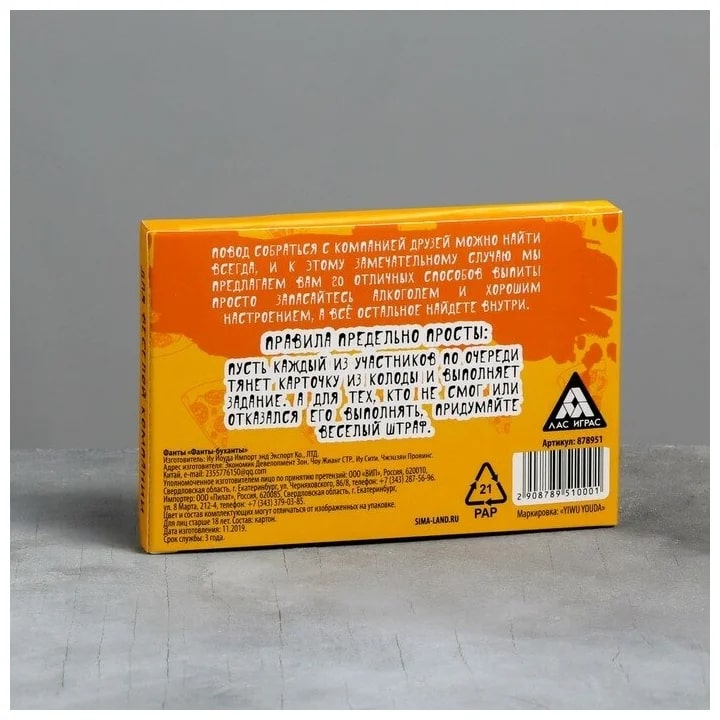 Купить игра для компании "фанты буханты" 20 карт от 100 руб. с доставкой до пункта выдачи в Пыть-Яхе. Интернет магазин ДекаМаркет. Оплата при получении.