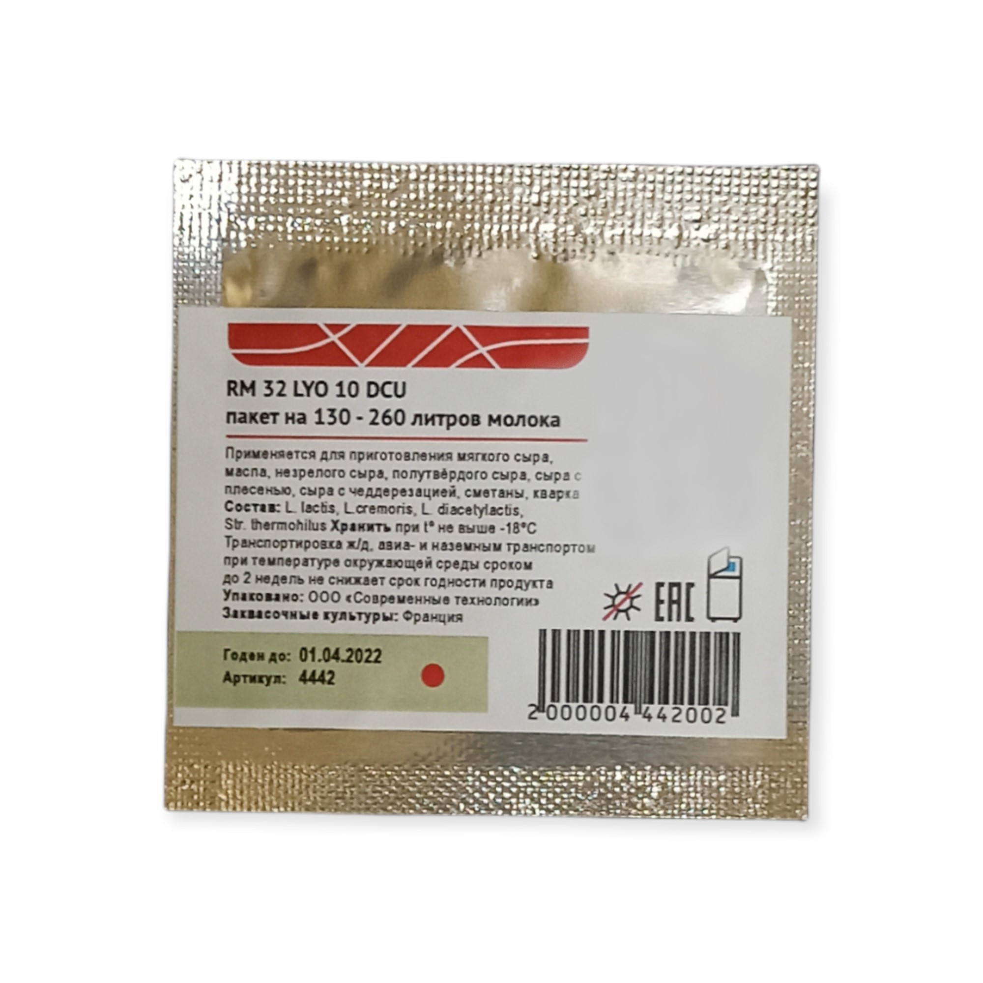 Мезо-термофильная закваска RM 32 LYO 10 DCU (на 130 - 260 л), Danisco от 510 руб. с доставкой. Пункт выдачи в Пыть-Яхе. Интернет магазин по сыроделию. Всё всегда в наличии.